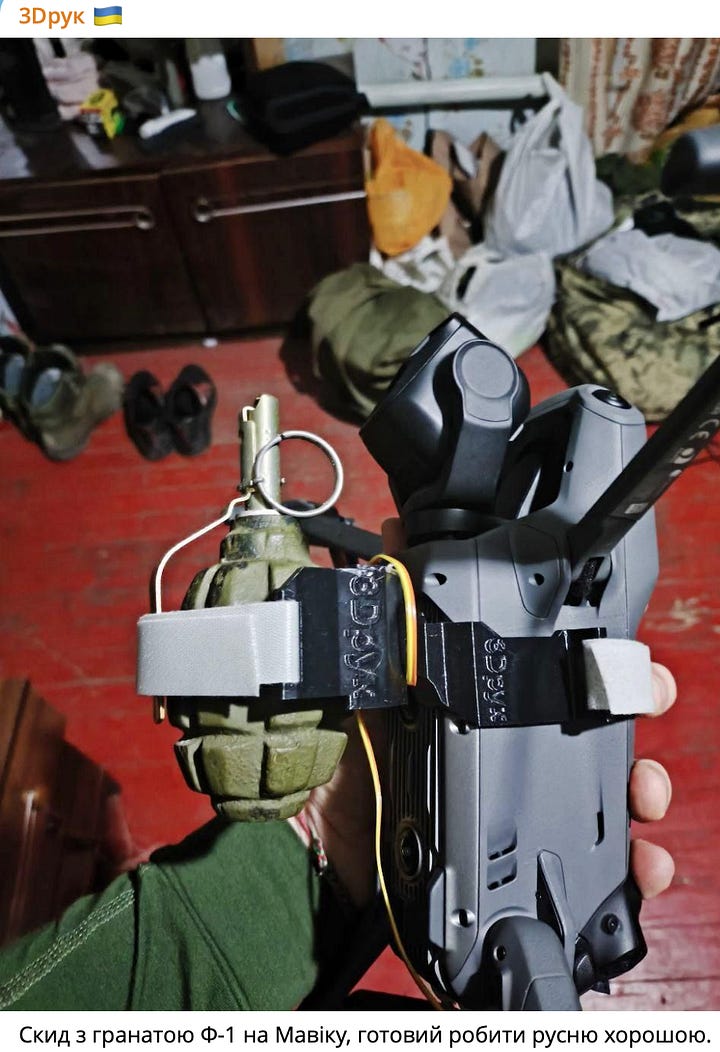 This video shows an FPV drone carrying a payload. The brothers designed and produced a custom mount to securely attach the payload to the drone during flight. From the 3Druk Telegram group.