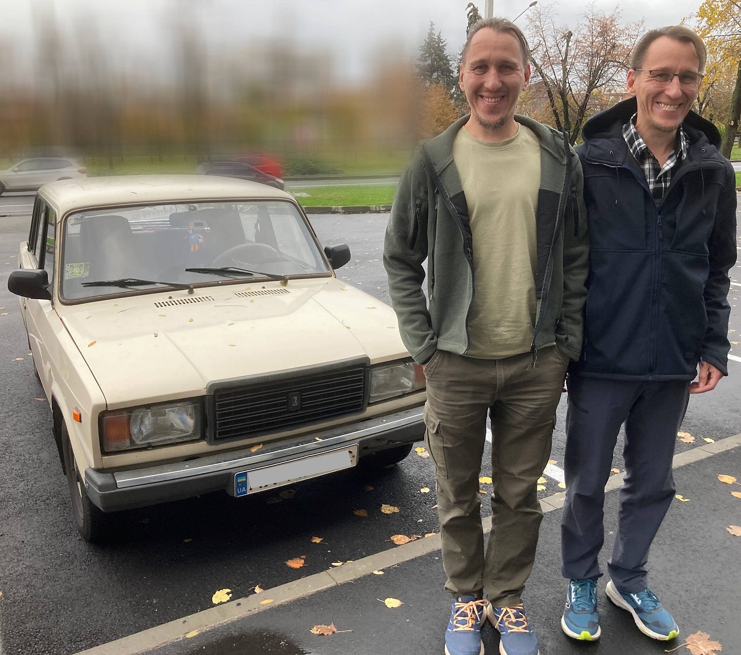 When the full-scale invasion happened, I’d only been driving this car for sixteen hours. I was inexperienced. My wife, my mother-in-law and my cat evacuated [with me] and since them I’m not afraid to drive, I’m not afraid of dangerous situations. I never wanted to drive, but now I drive around on volunteering business all day.